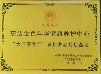 2020年12月,燕达养护中心被中国小康建设研究会养老发展分会评选为“‘大同康养汇’首批养老特色基地”。