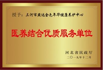 2019年12月,河北省卫生健康委、河北省民政厅联合发文,经各地推荐、资料审核、现场核查等程序,拟确定33家单位为全省首批医养结合优质服务单位,燕达金色年华健康养护中心上榜。