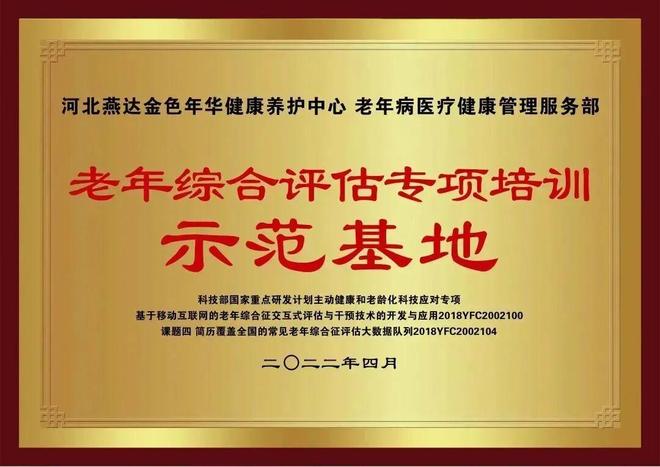 2025年1月16日,中国老龄事业发展基金会授予燕达金色年华健康养护中心“老年营养改善工程科普宣教基地”称号。