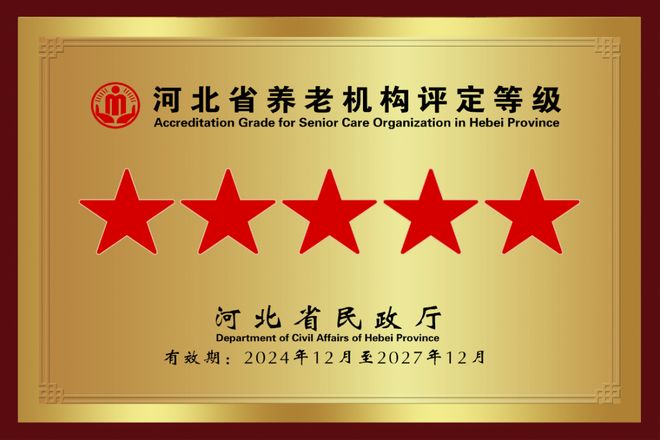 2024年12月9日,燕达金色年华健康养护中心在河北省2024年度养老机构等级评定中,被复评为“五级养老机构”。
