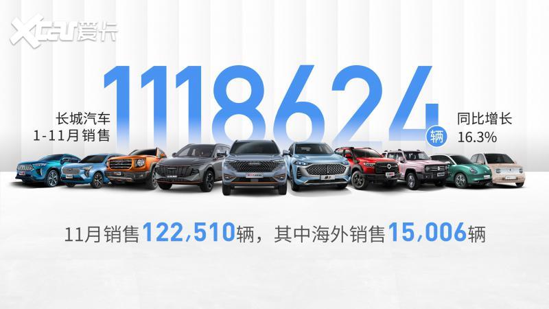 就在前两天,长城发布了11月整体销量,销售新车122510辆,而海外销售15006辆,同比增长61.3%,创历史新高,销售占比持续提升至12.2%;1-11月,长城汽车在国内的整体销量已经超过百万,达到1118624辆,海外则销售127026辆,同比增长106.3%。
